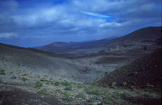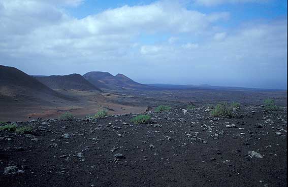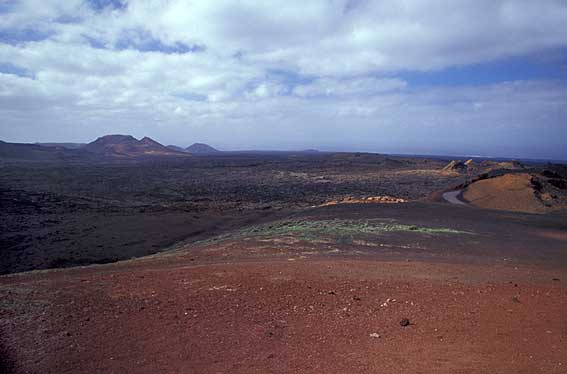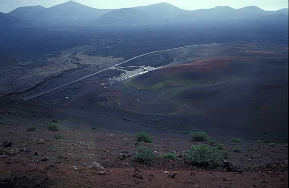 Vistas desde el autobús dentro de las Montañas del Fuego. Timanfaya parque Nacional